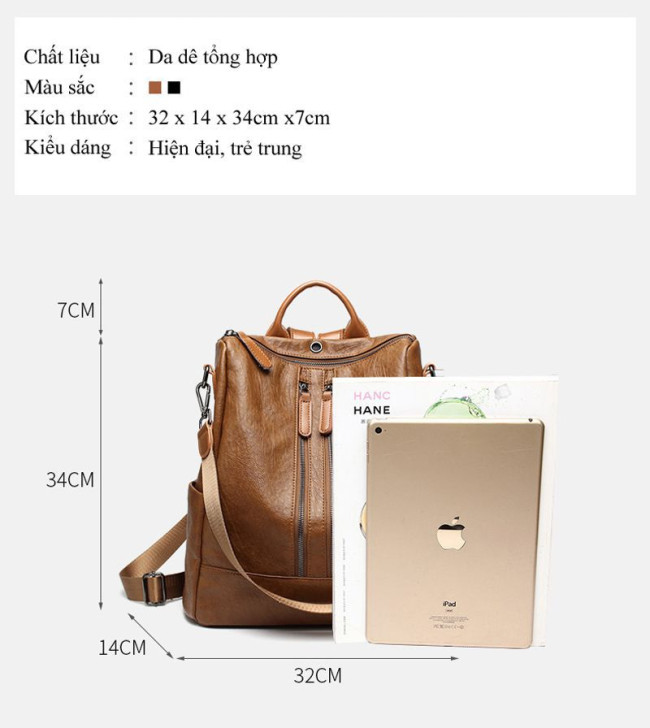 - + Kích thước túi : Ngang 32cm x cao 34cm x rộng 14cm