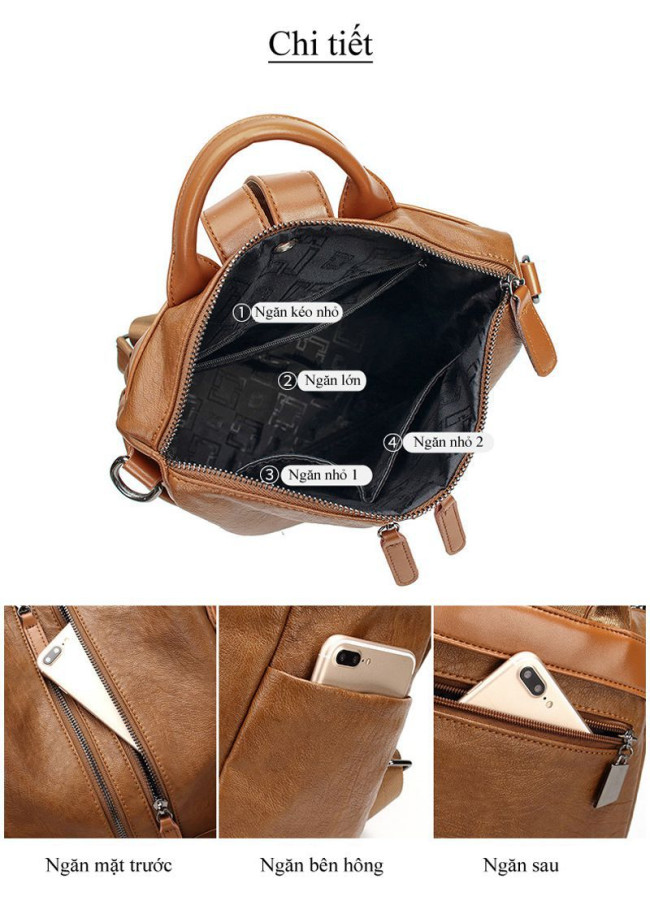 - + Kết cấu : Gồm 1 ngăn lớn, 5 ngăn nhỏ, có thể bỏ nhiều vật dụng v.v...(có lỗ khóa dành cho dây phone)